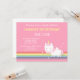 Tenha uma celebração mágica com este convite para unicórnios fofo! Este convite de aniversário colorido tem um unicórnio giro com algodão cor rosa, doce cor de mana e cauda, e asas minúsculas. Está andando ao longo de um arco-íris. Sparkles e estrelas decoram o convite. Um tema maravilhoso para a festa de aniversario de meninas com suas generosas tonalidades rosa! Personalize facilmente com os detalhes do seu partido.