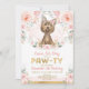 Comemore o aniversário da sua menina com este belo convite com um adorável cachorrinho Yorkshire Terrier rodeado de lindas flores rosa e cinza e delicada cor d'água verde