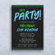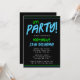 Um legal modelo brilhante, verde e convite de aniversário azul. Este convite de tendências é perfeito para um adolescente ou aniversário de adolescente. A fonte em negrito pop no plano de fundo preto. Edite este convite você mesmo!