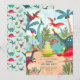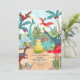 Um convite de festa de aniversário de menino dinossauro pintado à mão com dinossauros em uma selva pré-histórica para crianças. Arte original de Caroline Bonne Müller.
