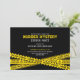Convite de festa de mistério de assassinato com um design moderno com fitas de cena do crime amarelas da polícia. Para a festa de aniversário policial perfeita, noite de jogo de detetive ou evento de escape room com tema de crime. Produtos personalizáveis para uma celebração memorável.