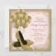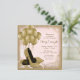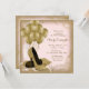Convite de aniversário feminino rosa e dourado com sapatos de salto alto brilhantes dourados, balões dourados, champanhe e pérolas em um fundo de redemoinho rosa e dourado. Este convite de aniversário rosa e dourado é facilmente personalizado para o seu evento, basta adicionar os seus detalhes no estilo de letra e cor, texto e layout de sua escolha. Você também pode mover ou excluir a champanhe e os balões. Este é um design impresso sem jóias reais, pérolas, brilho, etc.