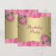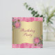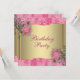Convite de festa de aniversário de mulher, festa de aniversário de casamento, convite de festa de aniversário de qualquer número com laço dourado e rosa, dália rosa dourada.