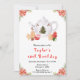 Este convite de aniversário elegante e festivo apresenta um bule de chá e biscoitos de pão de gengibre. Nos cantos estão lindas flores vermelhas da poinsettia. O texto combina o script manuscrito e as fontes sans serif para uma aparência na moda e moderna. Isto é perfeito para um brunch de Natal ou uma festa de chá.