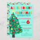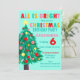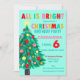 Convite de aniversário de Natal Verde do Mar das Árvores. "All Is Bright" convite de aniversário de Natal colorido personalizado com ilustração de árvore de Natal desenhada à mão feita por tinta acrílica e desenho digital. Ilustração de árvore de Natal verde estilo Vintage, decorada com vermelho, rosa, laranja e amarelo brilhante. Simples e fofo, personalize facilmente adicionando seu nome e informações de evento.
