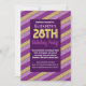 Surpreenda seus convidados festas de aniversário com estes convites coloridos que dão uma reviravolta moderna numa faixa Celta. Use "Personalizar este modelo" para ajustar o texto para corresponder ao seu evento. O texto branco, amarelo, lilás e roxo em fontes na moda é enquadrado por faixas das mesmas cores sobre um roxo escuro.