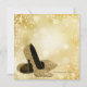 Convite de festa de aniversário elegante em champanhe dourada e glitter dourado, sapato de salto alto bege e dourado. Você pode personalizar facilmente este lindo convite de festa de aniversário em marfim e dourado adicionando seus detalhes no estilo de letra e cor, palavras e layout de sua escolha.