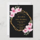 Um convite de aniversário floral tropical 50º (ou qualquer idade) com flores de hibisco cor-de-rosa, verde e uma estrutura geométrica falsa de ouro. Fundo negro elegante. Modelos para um nome escrito com um script de estilo manuscrito moderno, modelos para suas informações de partido. Texto preto. Perfeito para uma festa de verão, piscina ou praia! Fundo: fundo preto.
