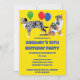 Festa em estilo com estes convites bonitos. Eles apresentam ilustrações realistas do estilo dos cães Shepherd australianos junto com balões contra um fundo amarelo brilhante e são fáceis de personalizar com todos os detalhes do seu partido.