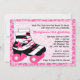 O convite de aniversário de patinação apresenta fundo de impressão leopardo rosa e skate de cilindro de impressão zebra.