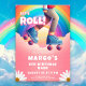 Prepare-se para se divertir! Este convite colorido de patinação mostra skates retrógrados, fundo de arco-íris vibrante e tipografia divertida — perfeito para uma festa de aniversário ou qualquer celebração de pisca-rolante.