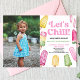 Este é um Convite de aniversário de fotos personalizadas de preenchimento verde cor-de-rosa.