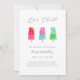 Convite de aniversário de criança giro e bonito com ilustração aquarela de picolés em cores brilhantes e divertidas. O texto diz "vamos frio! pop para comemorar." Perfeito para a festa de aniversário de uma garota no verão.