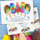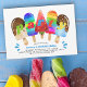 Convite de aniversário de picolé para seu aniversário e editável para qualquer idade. O convite é decorado com tipografia divertida e picolés coloridos, originalmente pintados em aquarela. Os picolés estão escritos com a palavra "festa" e o modelo está preparado para você adicionar o nome da sua garotinha e os detalhes da festa. O dorso tem um padrão de picolés e picolé dizendo "pop on over" e "chill out with us". Paleta colorida do arco-íris com azul-turquesa e verde limão.