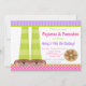 Cachorros, pijamas e panquecas, Convite de festas para aquela ocasião especial. O fundo tem faixas roxas e bolinhas cor-de-rosa. As palavras podem ser mudadas de acordo com suas próprias necessidades. Trabalho de arte por Ilustrações JW