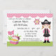 Arrgh, matey. Este convite de aniversário de pirata giro apresenta uma pirata de menina vestida de rosa e preto e um baú de tesouro rosa. Completamente personalizável.