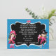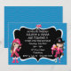 Estas convites de festas de aniversários piratas para meninas gêmeas incluem crânio e bósforos, e meninas gêmeas vestidas de rosa em fundo azul-oceânico. Campos de texto personalizados para as informações da sua parte.
