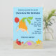 Este convite de aniversário fofo personalizável apresenta uma sereia sob o mar segurando um balão.