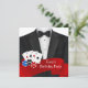 Fichas de pôquer e cartas de baralho Convite de festa de pôquer em Las Vegas. Este convite de festa de pôquer vermelho e preto é facilmente personalizado para o seu evento, basta adicionar os detalhes do evento, estilo de fonte, tamanho e cor da fonte e texto.