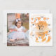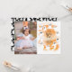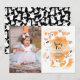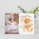 Convite de festa de aniversário de menina com tema de halloween fofo com ilustração de fantasmas assustadores em cor de água laranja com um padrão de fantasma preto e branco na parte de trás. O texto diz "Pequeno Assustador". Arte original de Caroline Bonne Müller