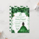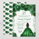 Este elegante e glamouroso convite de aniversário apresenta uma bela princesa com cabelo castanho e pele escura num vestido de caça com bola verde. O texto combina o script manuscrito e as fontes sans serif modernas para um aspecto elegante e sofisticado. Os arranjos florais, borboleta e confete criam a mistura perfeita de rústico e chic. Gráficos por www.etsy.com/uk/shop/SunflowerDayLove