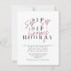 É hora de comemorar! Nosso Convite de aniversário Sip Sip Hooray Wine apresenta "sip sip hooray" na apresentação moderna do tipo duo com tipografia de script com letra de vinho sobre o tipo clássico de serifa, e o cartão é personalizado no tipo moderno de sans serif. O tipo de marcador diz aniversário de "provando de vinho", mas o tipo de evento e a idade podem ser completamente editados de acordo com suas necessidades. A parte de trás da carta apresenta uma bela textura de folha de alumínio colorida com vinho. Um belo convite de aniversário moderno! Copyright Elegant Invites, todos os direitos reservados.