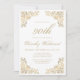 Este convite para bolsas mensageifestas de aniversario elegante apresenta uma imagem dourada antiga em quatro cantos. O número de aniversário editável e o nome do convidado de honra aparecem no script ouro do ornamentado, com o resto do texto personalizável na fonte da placa de impressão dourada. O mesmo quadro dourado aparece no verso.
