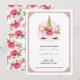 Convites Unicórnio Rosa e Dourado Rosas Florais Aniversário