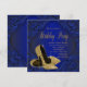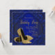 Convites de festa de aniversário de sapato de salto alto brilhante azul royal e dourado para mulher. Este convite de festa de aniversário azul royal e dourado é facilmente personalizado para a sua festa ou evento, adicionando os detalhes do evento, estilo de fonte, tamanho e cor da fonte e texto. Este é um design impresso sem brilho real.