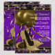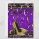 Convites de festa de aniversário femininos de sapatos de salto alto brilhantes roxo e dourado elegantes. Este convite de festa de aniversário roxo e dourado é facilmente personalizado para a sua festa ou evento, adicionando os detalhes do evento, estilo de letra, tamanho e cor da letra e texto.