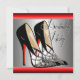 Calçados de alto salto vermelho elegante. Personalize o lado de trás com os detalhes da sua festa e evento e o estilo da fonte.