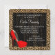 Convite de festa de aniversário de leopardo vermelho com sapatos vermelhos de salto alto e taça de champanhe. Este convite de festa de aniversário de sapatos vermelhos de salto alto com estampa de leopardo é facilmente personalizado adicionando os detalhes do seu evento, estilo de fonte, tamanho e cor da fonte e texto.