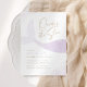 Convide amigos e família para celebrar o dia especial do seu pequeno dia com este adorável convite de aniversário com tema de sereia, com um rabo de sereia roxo e detalhes de brilho.