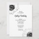Convide convidados para a sua comemoração do dia a dia com o bonito Convite de aniversário Negro e Girassol Branco. Personalize-o com o nome da aniversariante e detalhes específicos do seu evento de b dia. Este elegante convite personalizado para festas de aniversário floridas apresenta girassóis em preto e branco adorando os cantos com fundo branco.