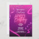 Moderno e ultra festivo Shhh é uma surpresa para o feliz Convite de festas de aniversário com confete rosa e roxo, peças enroladas de fita rosa e roxa e luzes de néon rosa. O plano de fundo apresenta um gradiente rosa moderno a roxo a preto. Personalize com o nome e o vamos para que a festa comece!
