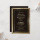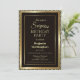 Um convite de aniversário surpreendente moderno com uma borda dourada dentro de uma armação dourada embelezada em estampagem diagonal num fundo preto.
