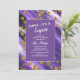 Púrpura brilhante e divertida com convite de aniversário Surpresa personalizado com brilho dourado.