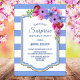 Convite de aniversário de surpresa floral listrado azul.