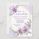 Elegante Watercolor Purple Floral Surprise Convite de aniversário com estrutura dourada em rosas e flores bonito roxas e lavandas.