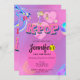 Um convite para o aniversário do Dance Star Fan Music e do K-pop Music colorido, fofo, para qualquer adolescente ou adolescente que ame música e estilo do K-pop. Personalize facilmente o design com suas informações para criar um convite exclusivo para sua adolescente. Rosa é a cor principal, combinada com uma paleta de cores de estilo retroativo.