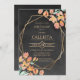 Este convite de aniversário elegante e moderno é perfeito para o evento de na moda e classe. Representa flores de queda de cor laranja queimadas, verde e laranja mandarina pintada manualmente e folhas sobre uma estrutura geométrica de folha de ouro impressa falsa com fundo de aquarela preta. É a arte, o país, doce e bonito; o design perfeito para o seu dia especial. ***NOTA DE DESIGN IMPORTANTE: Para qualquer solicitação de design personalizada, como solicitações de correspondência de produtos, alterações de cor, mudanças de posicionamento ou qualquer outra solicitação de alteração, clique no botão "MENSAGEM" ou envie um e-mail ao designer diretamente em lafemme.art@gmail.com. Você pode até enviar um e-mail para ela solicitando um design completamente personalizado e novo.