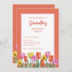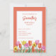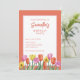 Linda ilustração aquosa de tulipas laranja, rosa e amarelas sobre fundo branco para festas de aniversário com primavera. Personalize o cartão de convite de aniversário para qualquer aniversário de etapa e pessoa.