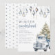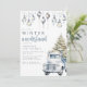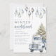 "Celebre o primeiro aniversário de inverno do seu pequeno com estilo com esses convites adoráveis! Nosso design moderno apresenta um caminhão encantador carregando uma árvore de Natal e bolas e luzes elegantes em tons de azul frio. As delicadas imagens em aquarela adicionam um toque de capricho a essa ocasião especial. Não perca a chance de convidar seus entes queridos para compartilhar a alegria do primeiro aniversário do seu filho. Compre agora e espalhe a emoção!"