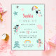Convide seus amigos com este Convite de aniversário mágico do Unicórnio Arco-Íris para a festa de aniversário de sua garota. Apresentando unicórnios bonitos em cor pastel, arco-íris, flocos de neve, e uma árvore de Natal, comemore a festa de aniversário de sua garota. Um unicórnio cor-de-rosa, guarda-chuva, começo colorido estão lá para garantir a festa do unicórnio de sua garota neste inverno :)