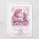 Um convite de aniversário bonito e cor-de-rosa com um unicórnio e uma fada.