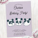 Apresentando um design de cartoon gigante do Panda que é perfeito para um convite de aniversário amante de os animais. Você pode personalizar facilmente o convite a seu gosto alterando qualquer texto. Sexo neutro para um menino ou menina. Arte original de Nic Squirrell.