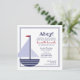 Este convite de aniversário náutico apresenta um doce e simples barco a vela e faixas de marinho no verso. Uma versão deste design com um sinalizador e texto cor-de-rosa também está disponível junto com adesivos favoritos do partido e etiquetas de manutenção no nosso compro.