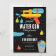 Uma espingarda de água e um tema de festa de aniversário de balões. Um design de convite de aniversário de criança personalizado perfeito para uma festa de aniversário de Verão. Personalize esta arma de água "Vamos encharcado" e o convite de aniversário de balões com o seu próprio texto e faça dele o seu próprio! Ideal para crianças aniversários!