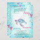 Estes convites apresentam uma tartaruga brilhante sobre um fundo azul. Este convite é facilmente personalizado para o seu evento simplesmente adicionando os seus detalhes.