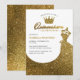 Dourada brilho Quinceañera convida com um vestido brilhante de bola e design de coroa cria uma maneira elegante e real de celebrar o aniversário milestone de uma jovem. Com uma incrível aparência de falso brilho com uma paleta de ouro, este convite combina glamour com sofisticação. Os elementos chamativos incluem um vestido de fantasia, uma coroa e uma tipografia graciosa que combina escrita manual e fontes modernas simples para um estilo equilibrado e formal. A parte traseira do cartão continua o tema com efeito de brilho de ouro de cheio, adicionando um acabamento luxuoso. Perfeito para as celebrações formais de Quinceañera, este convite dá o tom para um evento mágico, de estrelas. Disponível como placas impressas ou um download digital instantâneo.